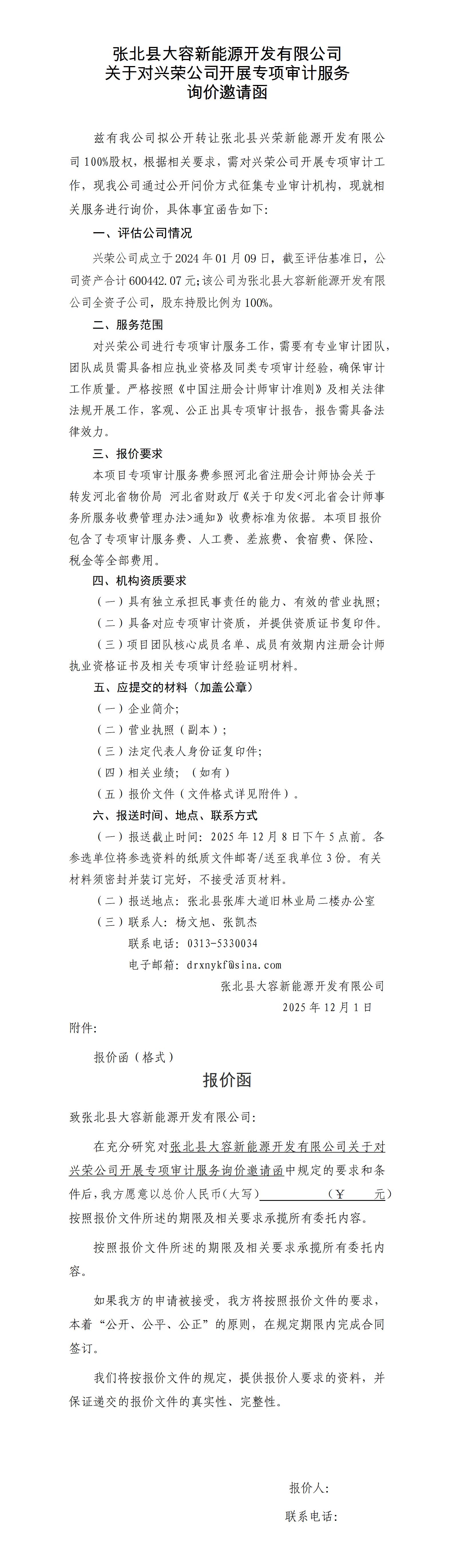 終稿興榮新能源開發(fā)有限公司專項審計報告詢價函.docx